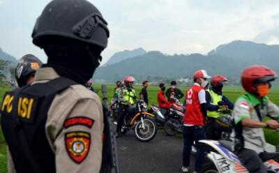 Relawan PMI Bersama TNI dan Polri Patroli Phsical Distancing