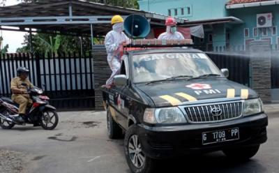 Sisir Pemukiman Warga, Relawan PMI Semprot Disinfektan