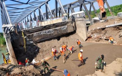 Perbaikan Jembatan Ambles di Jalur Pantura Comal