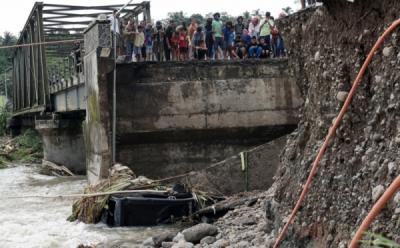 Mobil Terjun ke Kali Akibat Sambungan Jembatan Klawing Ambles