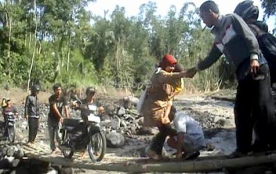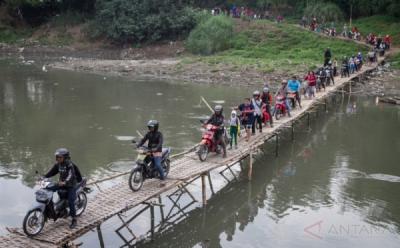Lihat Susah Payah Warga Meniti Jembatan Gantung dari Bambu
