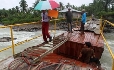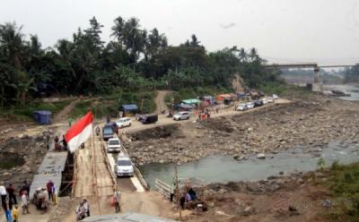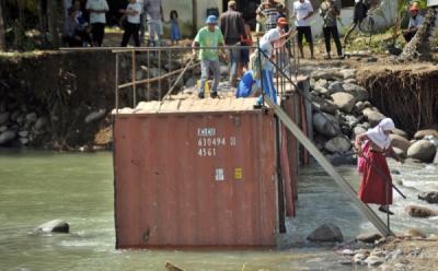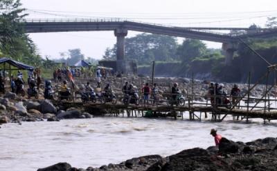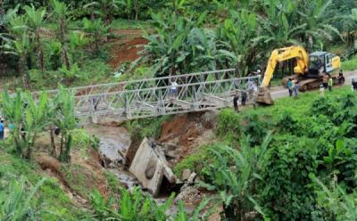 Jembatan Darurat Pengganti Jembatan Jalan Lintas Sulawesi yang Ambles