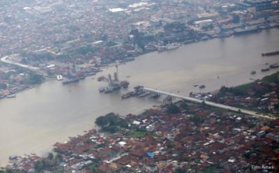 Melihat dari Udara Pembangunan Jembatan Musi IV Palembang yang Terus Dikebut