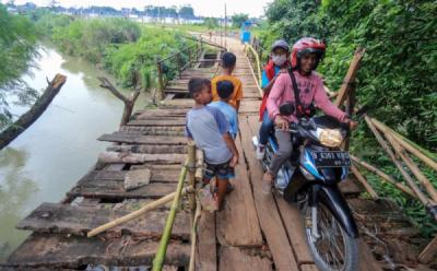 Kondisi Jembatan Antar Warga Rusak Parah di Desa Sukarasa Bogor