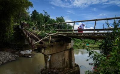 Rusak Akibat Luapan Sungai, Warga Hantakan Bangun Jembatan Darurat