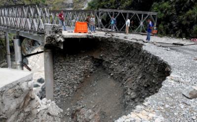 Perbaikan Badan Jembatan yang Longsor Akibat Topan Haima di Filipina
