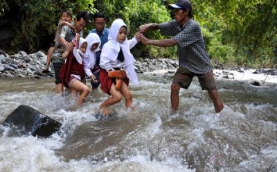 Lintasi Sungai, Bukan Hambatan untuk Sampai ke Sekolah