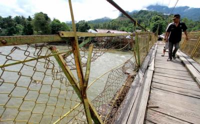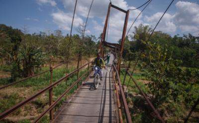 Ih Ngeri... Lihat Warga Melintasi Jembatan Gantung Berusia Puluhan Tahun Ini