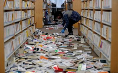 Warga Merapihkan Barang Pasca Gempa Mengguncang Fukushima Jepang