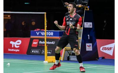 Selebrasi Jonatan Christie Antar Tim Thomas Indonesia ke Semifinal