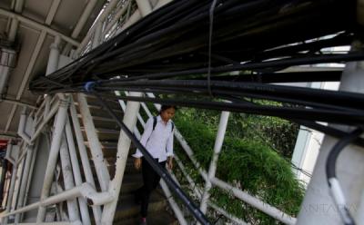 Kesemrawutan Kabel Listrik dan Telekomunikasi di Cibiniong Menganggu Keindahan Kota