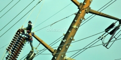 Potret Pekerja Lakukan Perawatan Kabel Sutet