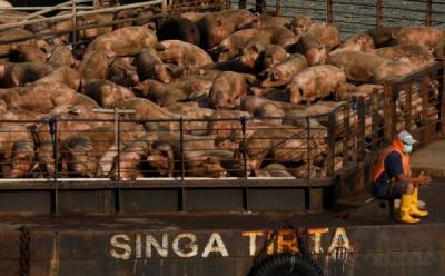 Ketika Sebuah Kapal Tongkang Dipenuhi oleh Babi-Babi