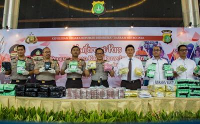Sambil Pegang Barang Bukti Kapolri Rilis Narkoba Jaringan Malaysia
