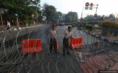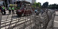 Polisi Berjaga Diantara Kawat Berduri saat Aksi 313