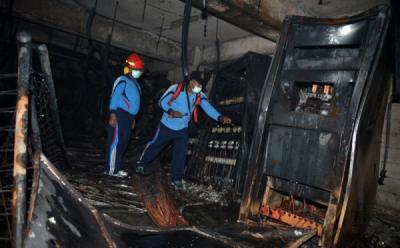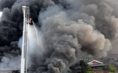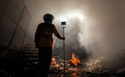 10 Mobil Damkar Dikerahkan Padamkan Kebakaran Gudang Bungkus Rokok di Surabaya