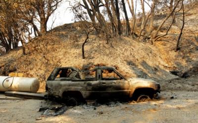Bangkai Kendaraan dari Kebakaran Hutan California