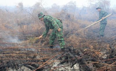 Pantang Menyerah Prajurit TNI Padamkan Kebakaran Lahan Gambut dengan Cara Manual