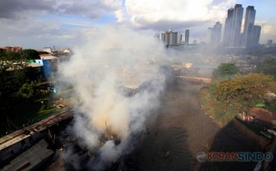 Kebakaran Hanguskan Gudang dan Pemukiman Warga di Kalibaru, Jakarta Utara