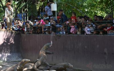 Serunya Memberi Makan Komodo di Kebun Binatang Surabaya