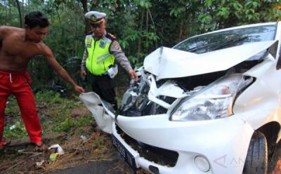 Mini Bus Kecelakaan Tunggal di Jalan Jenderal Sudirman
