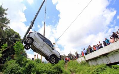 Diduga Hilang Kendali, Mobil SUV Ini Nyemplung ke Sungai di Tangsel