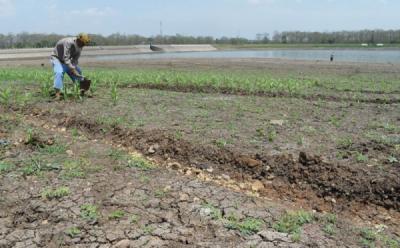 Petani Memanfaatkan Waduk yang Sudah Mulai Mengering untuk Lahan Pertanian