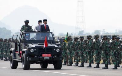 Presiden Jokowi dan Menhan Prabowo Naik Kendaraan Taktis Tinjau Pasukan di Pusdiklatpassus Batujajar