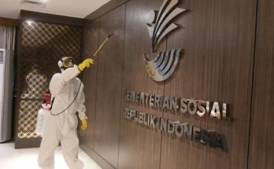 Penyemprotan Disinfektan di Kantor Pusat Kemensos