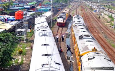 KRL Anjlok di Kampung Bandan Dibawa ke Balai Yasa Manggarai