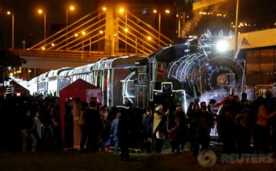 Terang-benderang Kereta Wisata La Sabana Dihiasi Lampu Natal