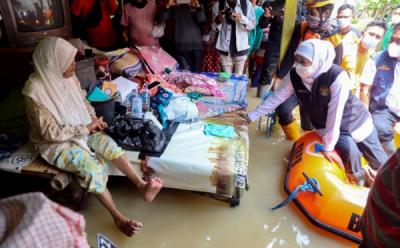 Gubernur Khofifah Tinjau Banjir Pamekasan Naik Perahu Karet