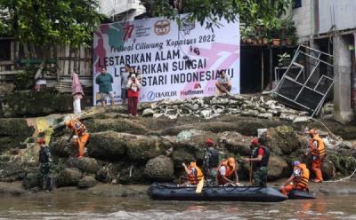 Prajurit Kopassus dan Warga Adu Lomba Bersihkan Ciliwung