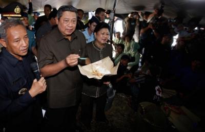 SBY Cicipi Makanan Pengungsi