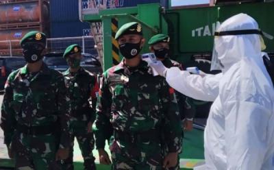 Bersandar di Dermaga Makassar, Prajurit TNI Terapkan Protokol Kesehatan