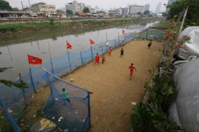 Kurangnya Lahan, Anak-Anak Bermain di Kali Kotor