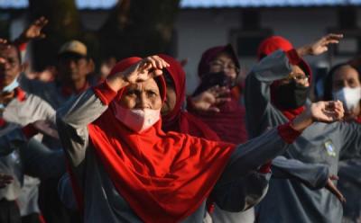 Potret Lansia Ikut Lomba Senam Kreasi di Kediri
