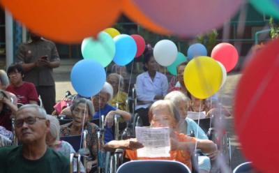 Oma Opa Terbangkan Balon Warna-Warni Bentuk Apresiasi Kegembiraan Lansia