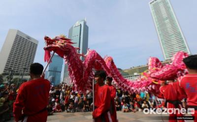 Atraksi Liong Sambut Imlek di Bundaran HI
