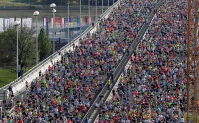 Lautan Manusia Penuhi Jembatan Reichsbrucke pada Wina City Marathon di Austria