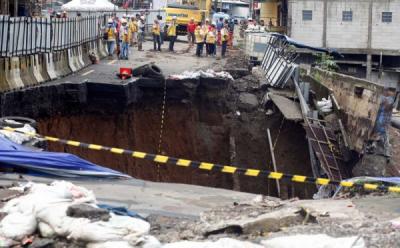 Lubang Besar di Jalan Nasional Bogor-Sukabumi Akibat Longsor