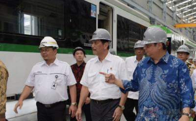 Kenakan Helm Proyek Abu-Abu, Menteri Luhut dan Airlangga Kunjungi PT Inka Madiun