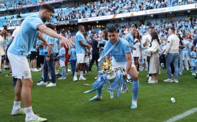 Foto-Foto Selebrasi Pemain Man City Juara Liga Inggris Empat Kali Beruntun