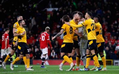 Selebrasi Para Pemain Wolves Berhasil Pecundangi Man United di Old Trafford
