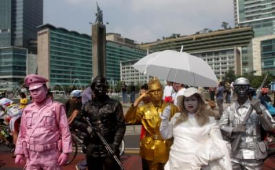 Ragam Aksi Manusia Patung pada Festival Statues en Marche di Belgia