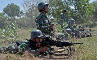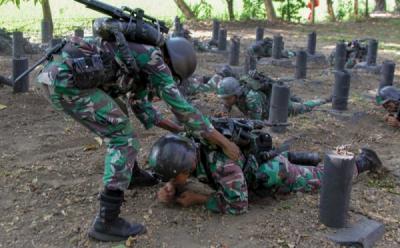 Prajurit Marinir TNI AL Latihan Perang Bersama Marinir Amerika di Sidoarjo