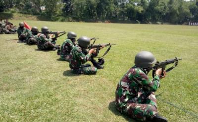 Prajurit Marinir Latihan Menembak Senapan Laras Panjang SS1