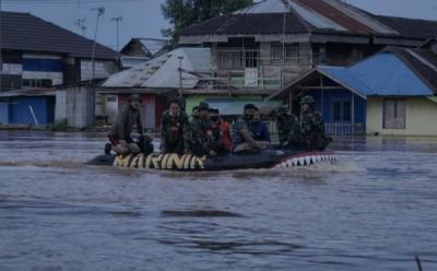 Misi Kemanusiaan, Marinir Diterjunkan Bantu Evakuasi Korban Banjir Kalsel