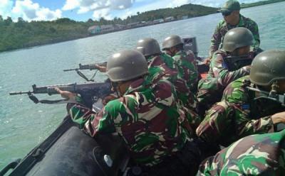 Latihan Menembak Reaksi di Atas Perahu Karet