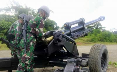 Latihan Prajurit Marinir Menggunakan Meriam Howitzer
